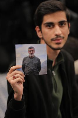اقامه نماز بر پیکر شهید سپهبد قاسم سلیمانی و یاران مجاهد او
