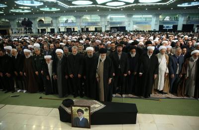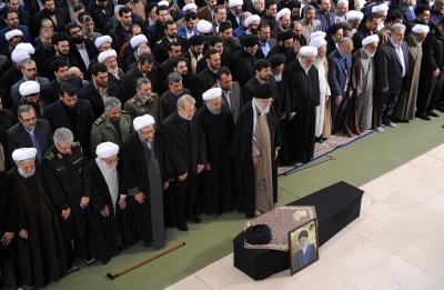 مراسم اقامه نماز بر پیکر آیتالله هاشمی شاهرودی به امامت رهبر انقلاب