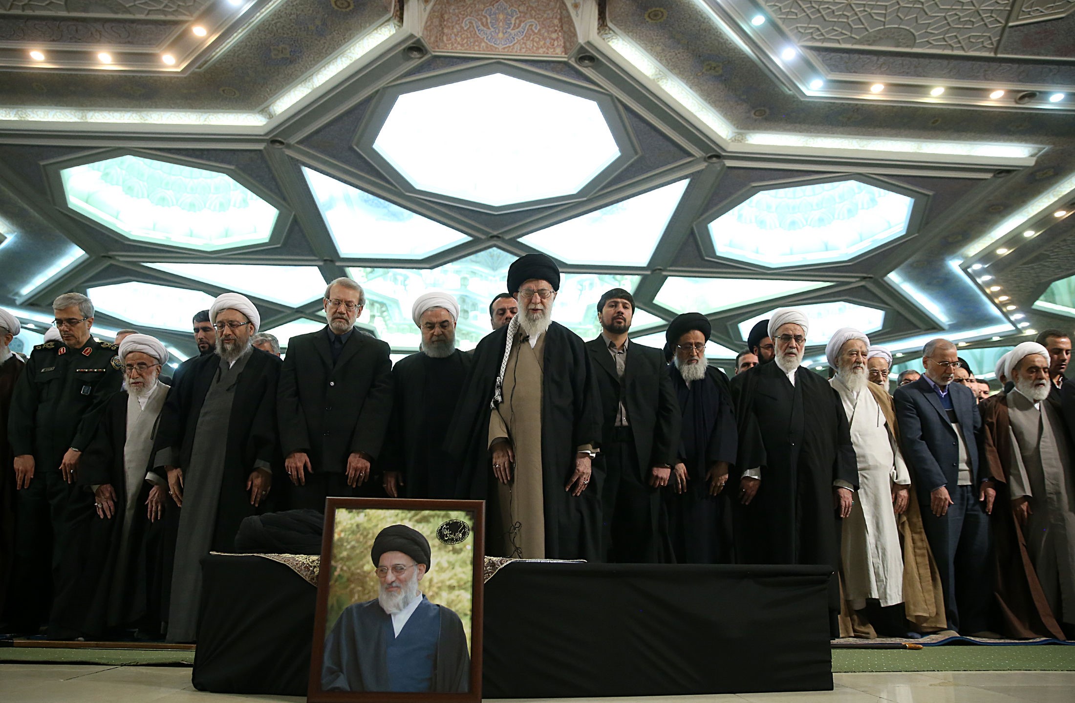 مراسم اقامه نماز بر پیکر آیتالله هاشمی شاهرودی به امامت رهبر انقلاب
